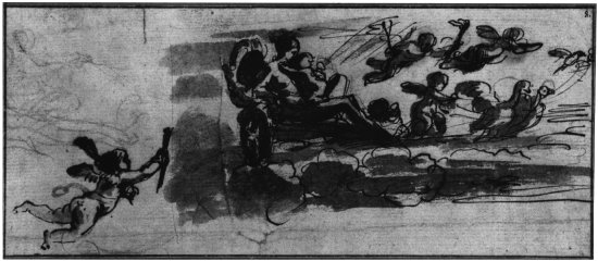 † Rom 1666) Venus mit Cupido im Wolkenwagen undatiert, 107 x 247 mm [Zuschreibung nach Turcic, traditionell: Guercino]