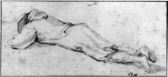 (* Neapel um 1590, wirkte in Neapel, Rom und Florenz, † Rom um 1639) Auf dem Bauch liegende männliche Figur undatiert, 51 x 109 mm
