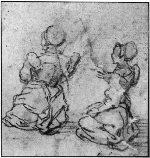 (* Neapel um 1590, wirkte in Neapel, Rom und Florenz, † Rom um 1639) Zwei kniende weibliche Figuren undatiert, 82 x 76 mm