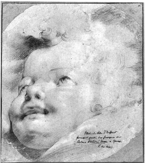 (1501, Florenz, wirkte in Rom und Genua, bis 1547, Rom) Kinderkopf Französische Schule 18. Jh., Kopie nach Fresko Perino del Vagas im Palazzo Andrea Doria zu Genua, 234 x 208 mm |
