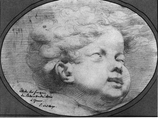 (1501, Florenz, wirkte in Rom und Genua, bis 1547, Rom) Kinderkopf Französische Schule 18. Jh., Kopie nach Fresko Perino del Vagas im Palazzo Andrea Doria zu Genua, 134 x 176 mm |
