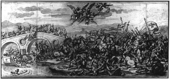 1724) Schlacht des Maxentius an den Tiberbrücken undatiert, 304 x 654 mm [traditionell, bestätigt: U. Knapp]